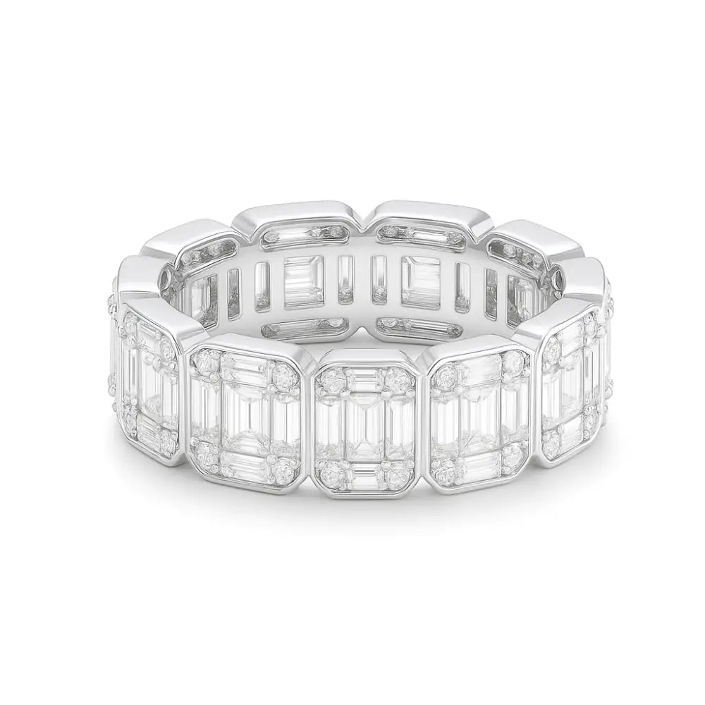 MOISSANITE BAGQUETTE HOOP RING - WHITE GOLD