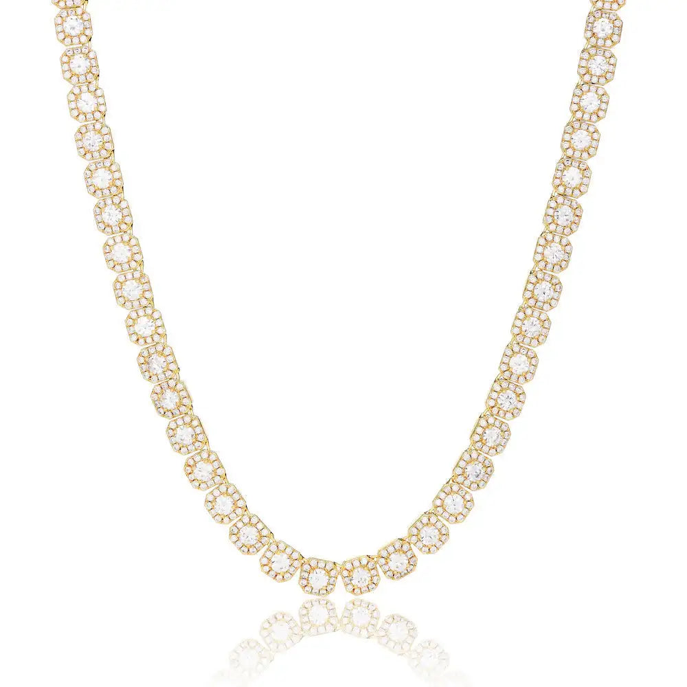 MOISSANITE CLUSTERED TENNIS CHAIN - 10MM GOLD