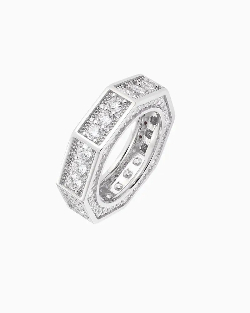 MOISSANITE ICED HEXAGON RING